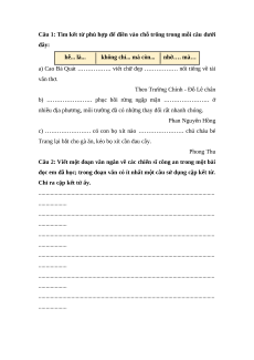 Câu 8: Em hãy điền từ gợi ý vào chỗ trống thích hợp để hoàn thiện đoạn văn sau: