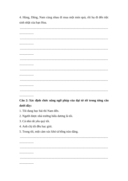 Câu 1: Gạch chân dưới các đại từ có trong các câu sau, cho biết đại
