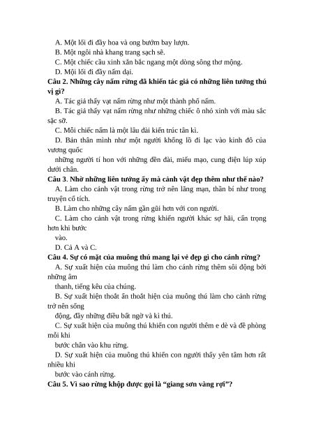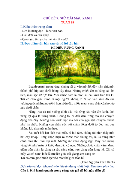 II. Đọc thầm văn bản sau và trả lời câu hỏi: KÌ DIỆU RỪNG XANH