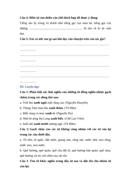 - Luyện tập về từ đồng nghĩa.