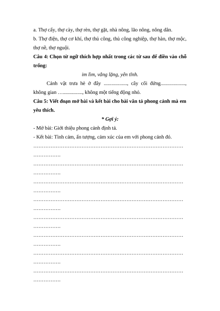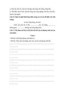 Câu 5: Viết đoạn mở bài và kết bài cho bài văn tả phong cảnh mà em yêu thích. * Gợi ý: