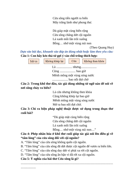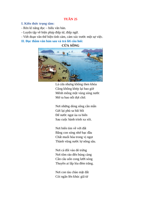 II. Đọc thầm văn bản sau và trả lời câu hỏi: CỬA SÔNG