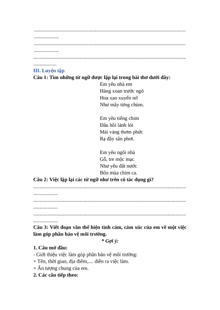 - Luyện tập về biện pháp điệp từ, điệp ngữ.