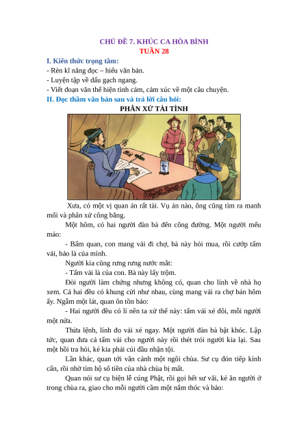 CHỦ ĐỀ 7. KHÚC CA HÒA BÌNH TUẦN 28
