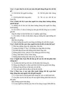 Câu 1: A-pác-thai là cái tên mà toàn thế giới dùng để gọi tên chế độ gì?