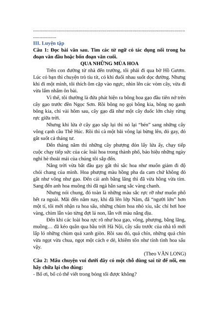 đoạn văn đầu hoặc bốn đoạn văn cuối. QUA NHỮNG MÙA HOA