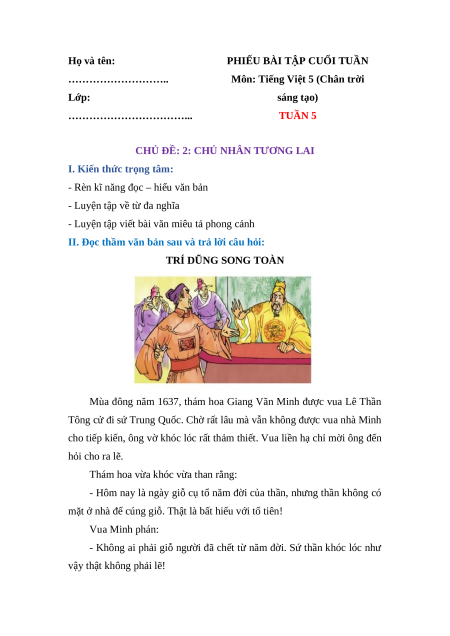 II. Đọc thầm văn bản sau và trả lời câu hỏi: TRÍ DŨNG SONG TOÀN