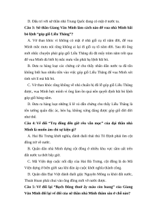 Câu 6: Trong điếu văn của vua Lê dành cho Giang Văn Minh, có ghi
