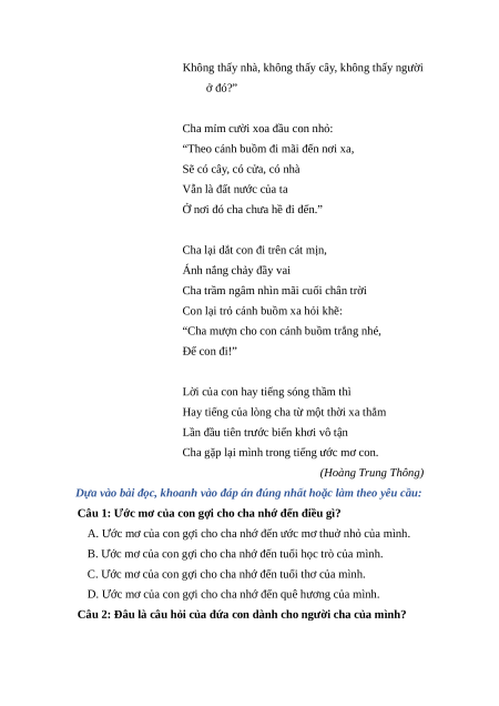 Câu 2: Đâu là câu hỏi của đứa con dành cho người cha của mình?