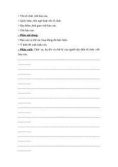Câu 3: Viết báo cáo về việc tình hình và kết quả học tập trong tháng của lớp em. * Gợi ý: - Phần mở đầu: