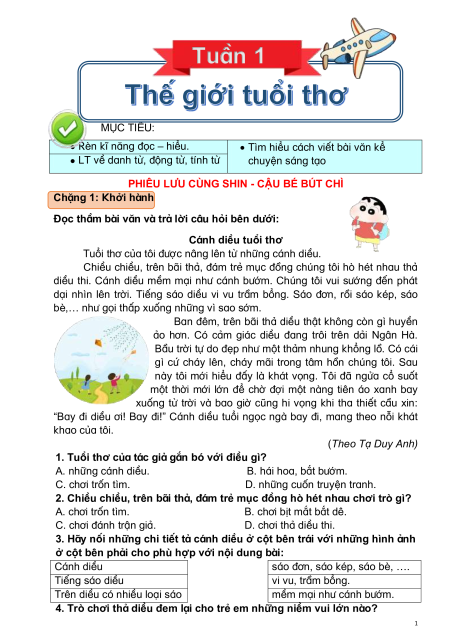 Tuần 1 MỤC TIÊU: Rèn kĩ năng đọc – hiểu.