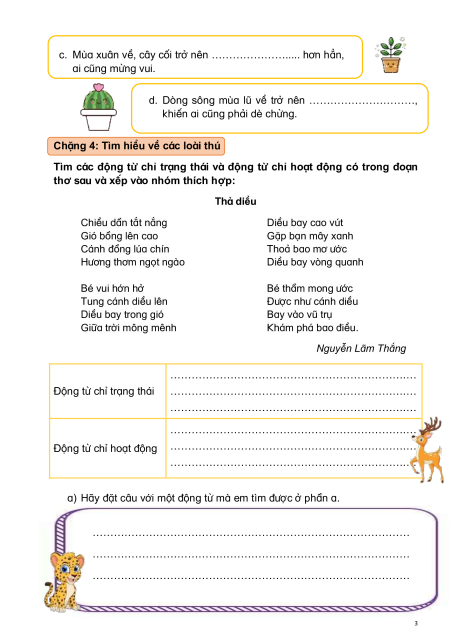 a) Hãy đặt câu với một động từ mà em tìm được ở phần a.