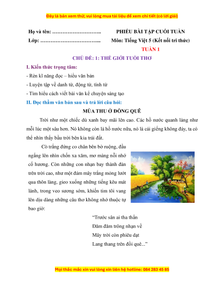 Môn: Tiếng Việt 5 (Kết nối tri thức) TUẦN 1