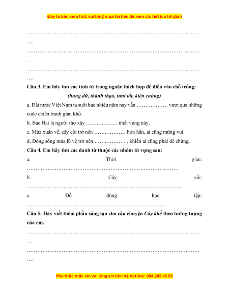 Câu 3. Em hãy tìm các tính từ trong ngoặc thích hợp để điền vào chỗ trống: