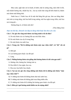 Câu 2. Trong câu “Đó là những mùi thơm mộc mạc chân chất”, từ “đó” chỉ cái gì? A. Đất quê.