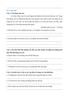 a. Em hãy tìm và chỉ ra những câu đơn và câu ghép có trong đoạn văn trên.