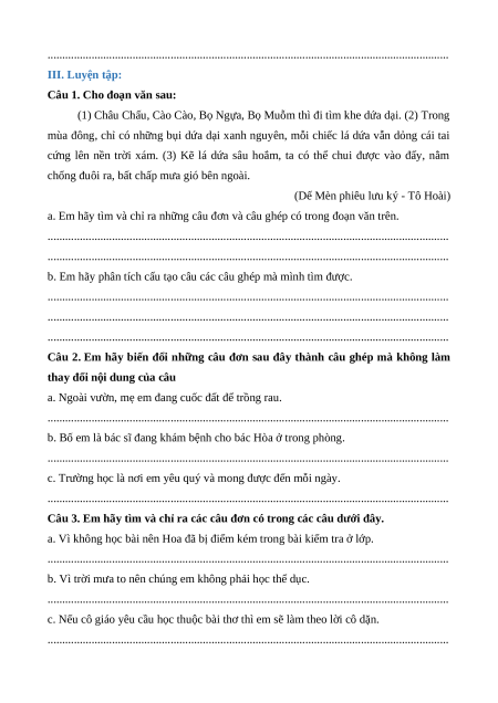 Câu 2. Em hãy biến đổi những câu đơn sau đây thành câu ghép mà không làm