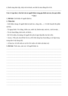 Câu 4. Lập dàn ý cho bài văn tả người thân trong gia đình mà em yêu quý nhất. * Gợi ý