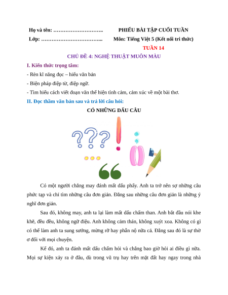 Bài tập cuối tuần Tiếng Việt lớp 5 Kết nối tri thức Tuần 14