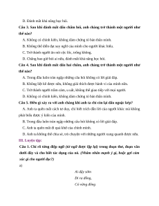 D. Anh ta không thể chia sẻ, trò chuyện với những người xung quanh được nữa. III. Luyện tập: