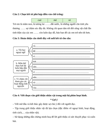 - Viết đoạn văn giới thiệu nhân vật trong một bộ phim hoạt hình.