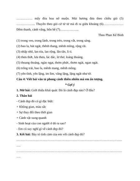 Câu 4: Viết bài văn tả phong cảnh thiên nhiên mà em ấn tượng. * Gợi ý