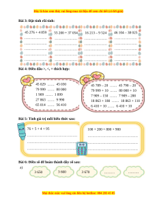 Bài 5: Tính giá trị mỗi biểu thức sau: 76 + 5 + 4 + 95 100 + 200 + 800 + 900