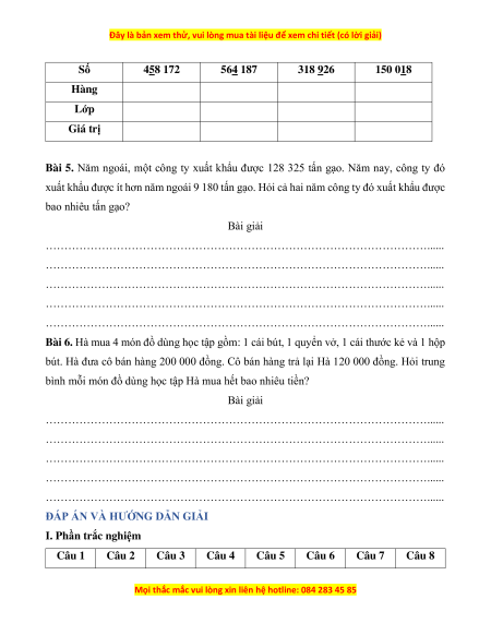Câu 5. Số nào dưới đây chứa chữ số 5 ở lớp nghìn? A. 352 000 000 B. 102 759 C. 405 829 D. 125 000 000