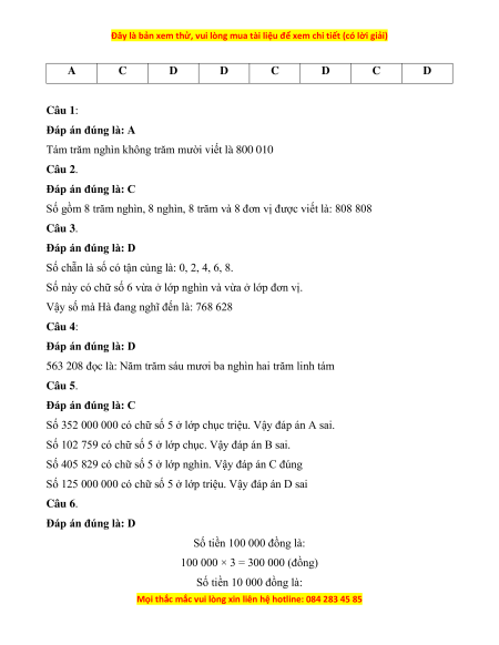 Số 125 000 000 có chữ số 5 ở lớp triệu. Vậy đáp án D sai Câu 6.