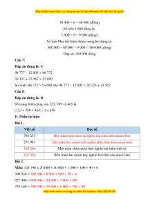 1 000 đồng. Vậy số tiền Mai tiết kiệm được trong ba tháng là: A. 360 000 đồng B. 361 000 đồng C. 316 000 đồng D. 369 000 đồng Câu 7: So sánh
