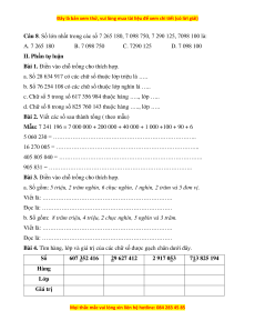 Câu 1: Trong các số 27 192; 81 492; 182 849; 139 482; số có chữ số 2 không thuộc hàng