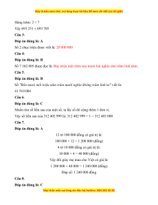 1 200 000 + 40 000 = 1 240 000 (đồng) Đáp số: 1 240 000 đồng Câu 8.