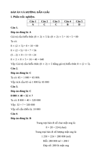 8 2 8 5 = 16 × 40 = 640 V y ậ Giá tr c ị a ủ bi u t ể h c ( ứ 8 2) 5 b ng ằ giá tr bi ị u t ể h c 8 ứ (2 5). Câu 2. Đáp án đúng là: C Ta có: 65 × 1 000 = 65 000. V y ậ tích c a 65 và ủ 1 000 là: 65 000 Câu 3. Đáp án đúng là: C