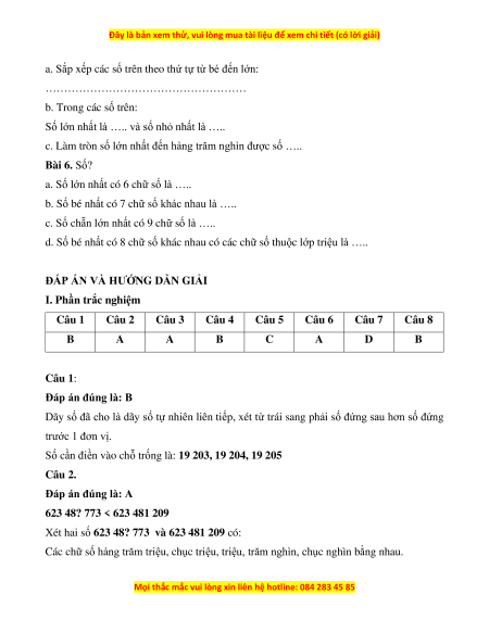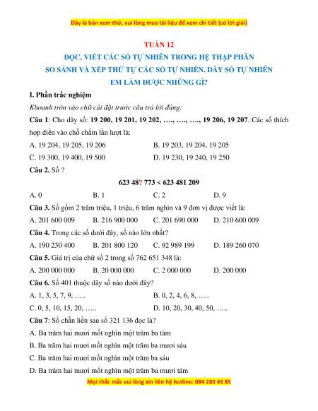 Câu 1: Cho dãy số: 19 200, 19 201, 19 202, …., …., …., 19 206, 19 207. Các số thích