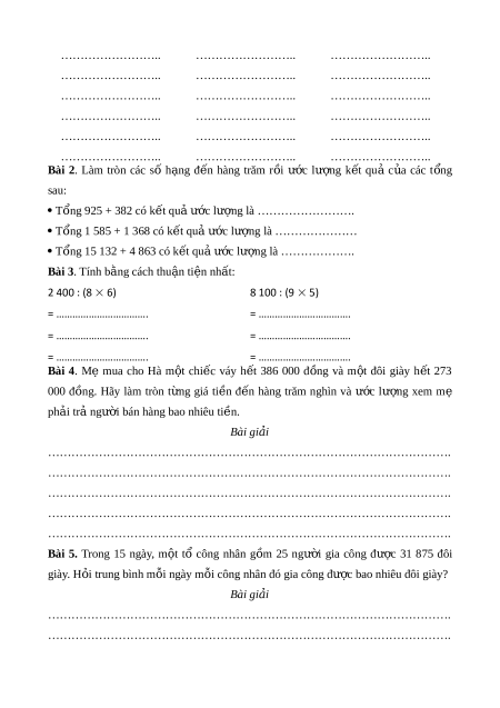 000 đ ng. Hãy làm tròn t ng giá ti n đ n hàng trăm nghìn và c l ng xem mồ ừ ề ế ướ ượ ẹ