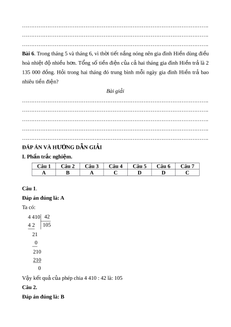 A. 655 000 đồng B. 675 000 đồng C. 645 000 đồng D. 625 000 đồng II. Phần t l ự u n ậ Bài 1. Đ t ặ tính r i ồ tính: 94 581 : 27 72 540 : 36 90 562 : 18 …………………….. …………………….. …………………….. …………………….. …………………….. …………………….. …………………….. …………………….. …………………….. …………………….. …………………….. …………………….. …………………….. …………………….. …………………….. …………………….. …………………….. ……………………..