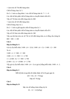 C. 3 (3 600 : 4) D. (3 600 3) : 4 Câu 4. Ngư i ờ ta chuy n ể về m t ộ b n ả vùng cao 35 bao g o, ạ m i ỗ bao cân n ng ặ 50 kg. Số g o ạ này sau đó đư c ợ chia đ u