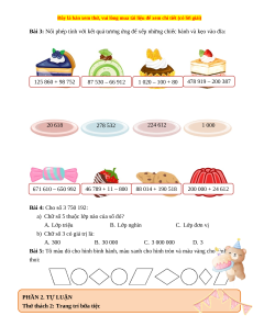 Ôn tập các số đến lớp triệu, phép cộng, phép trừ PHẦN 1. TRẮC NGHIỆM