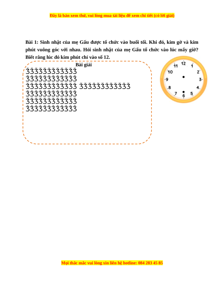 phút vuông góc với nhau. Hỏi sinh nhật của mẹ Gấu tổ chức vào lúc mấy giờ?