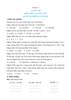 TUẦN 17. LUYỆN T P Ậ BIỂU TH C Ứ CÓ CH A Ứ CHỮ EM ÔN LẠI NH N Ữ G GÌ ĐÃ H C Ọ I. Phần tr c nghi ắ m ệ .