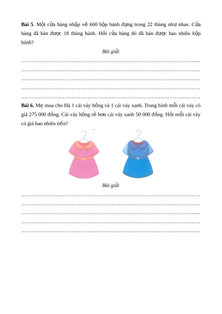 Bài 6. M mua cho Hà 1 cái váy h ng và 1 cái váy xanh. Trung bình m i cái váy cóẹ ồ ỗ