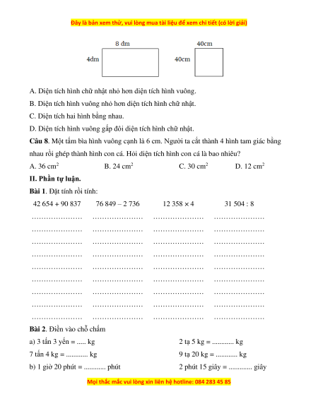 Đây là bản xem thử, vui lòng mua tài liệu để xem chi tiết (có lời giải)