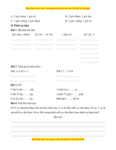 Bài 2. Tính giá trị biểu thức: 468 : 6 + 63 × 3 508 × 7 – 2 514 = ……………………. = …………………….. = ……………………. = …………………….. Bài 3. Số? 7 tấn 9 yến = ….. yến 12 tấn 6 tạ = ….. tạ 8 tấn 25 kg = ….. kg