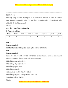 Câu 1. Số “Mười hai triệu không trăm mười nghìn” viết là: A. 12 010 100 B. 12 010 000 C. 12 100 000 D. 12 010 110