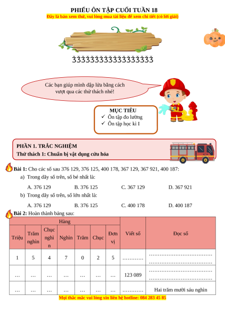 PHIẾU ÔN TẬP CUỐI TUẦN 18