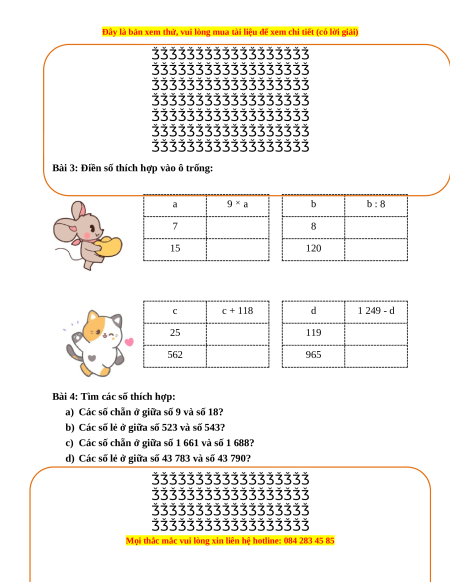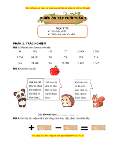PHIẾU ÔN TẬP CUỐI TUẦN 2 MỤC TIÊU Số chẵn, số lẻ
