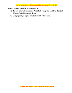 Bài 2: Cho hình vuông có độ dài cạnh là a