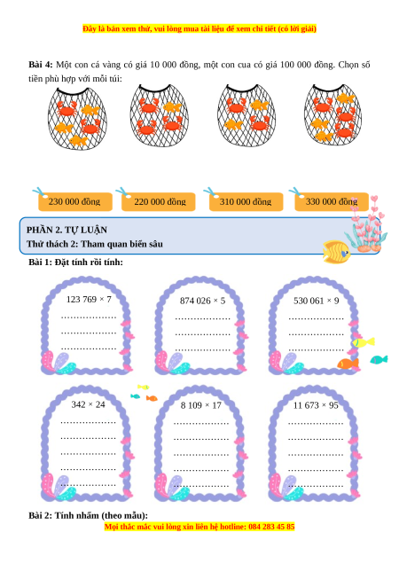 Bài 4: Một con cá vàng có giá 10 000 đồng, một con cua có giá 100 000 đồng. Chọn số
