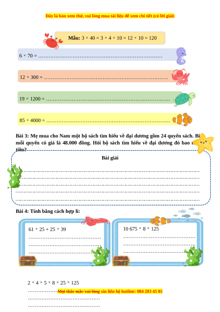 Bài 3: Mẹ mua cho Nam một bộ sách tìm hiểu về đại dương gồm 24 quyển sách. Biết