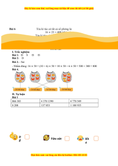 Bài 2: Trong các tính chất sau tính chất nào không phải tính chất của phép nhân? A. Giao hoán B. Kết hợp C. Nhân với 1 D. Nhân với 5